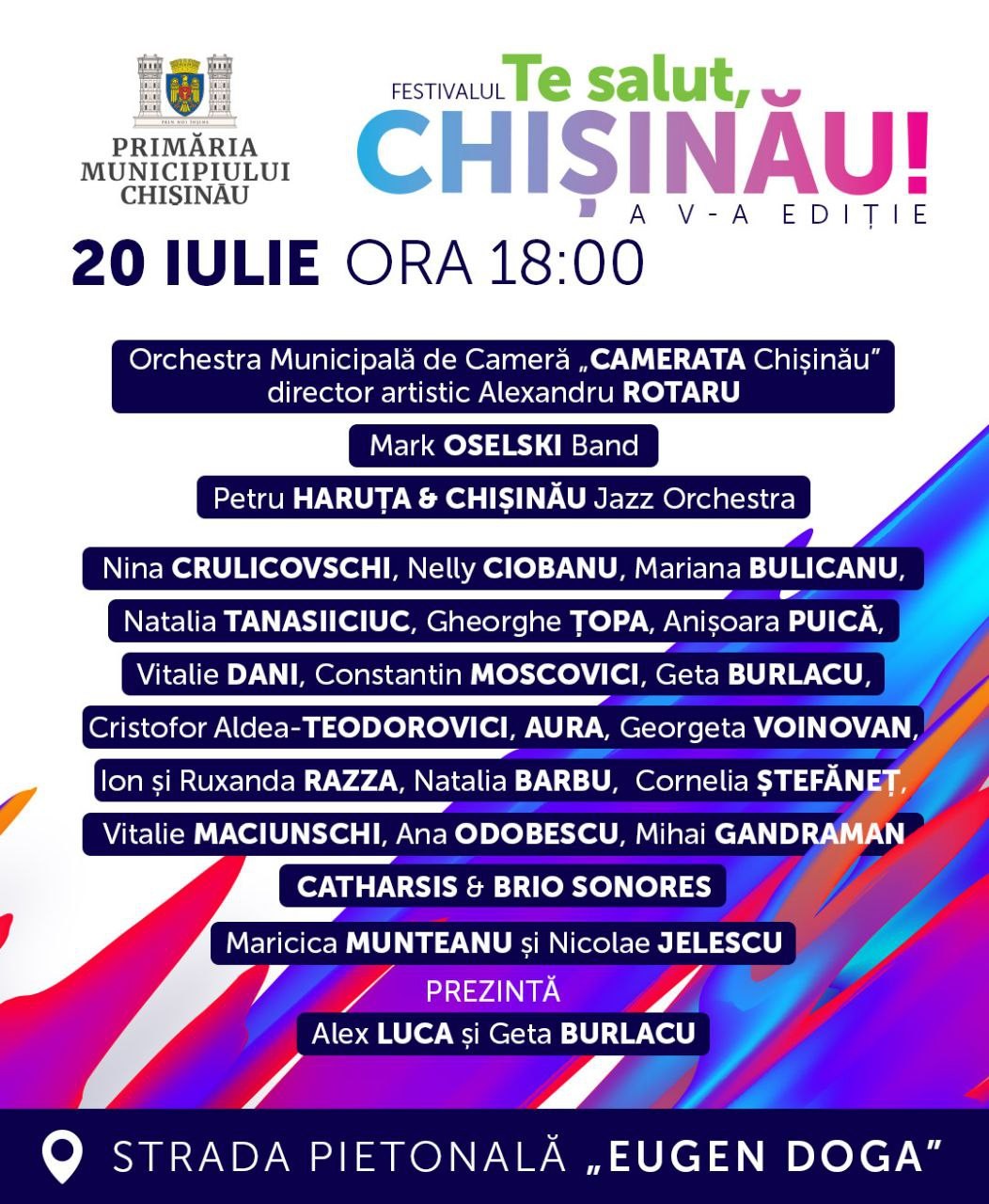 Primăria Chișinău vă invită să trăim împreună magia celei de-a V-a ediții a Festivalului „Te salut, Chișinău!” — trei seri pline de tradiții, muzică și emoție.